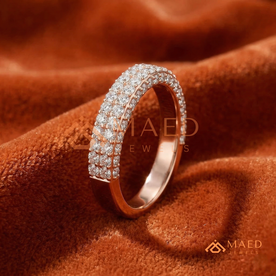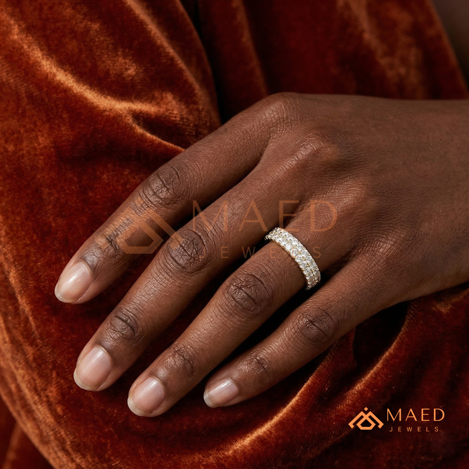 Anillo de Diamantes Creados en Laboratorio | Anillo de aniversario de oro rosa macizo | Elegante Anillo de Compromiso de Doble Hilera | Joyería de Moissanita, Regalo para Ella