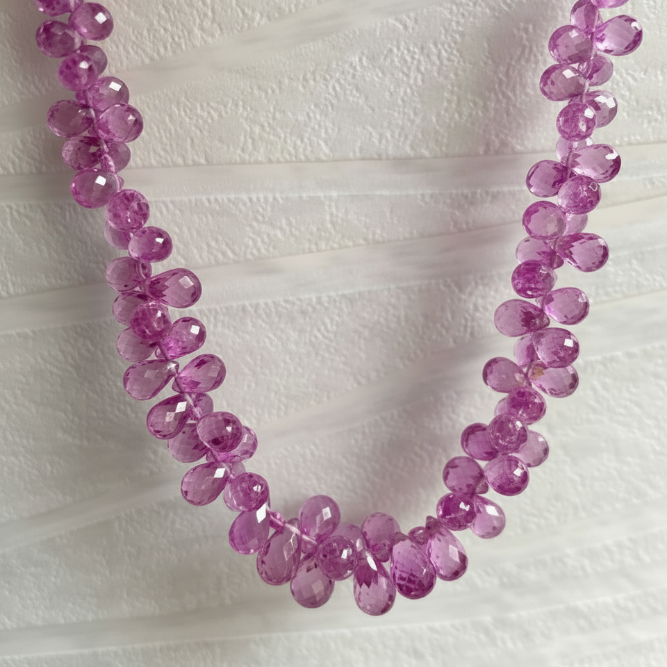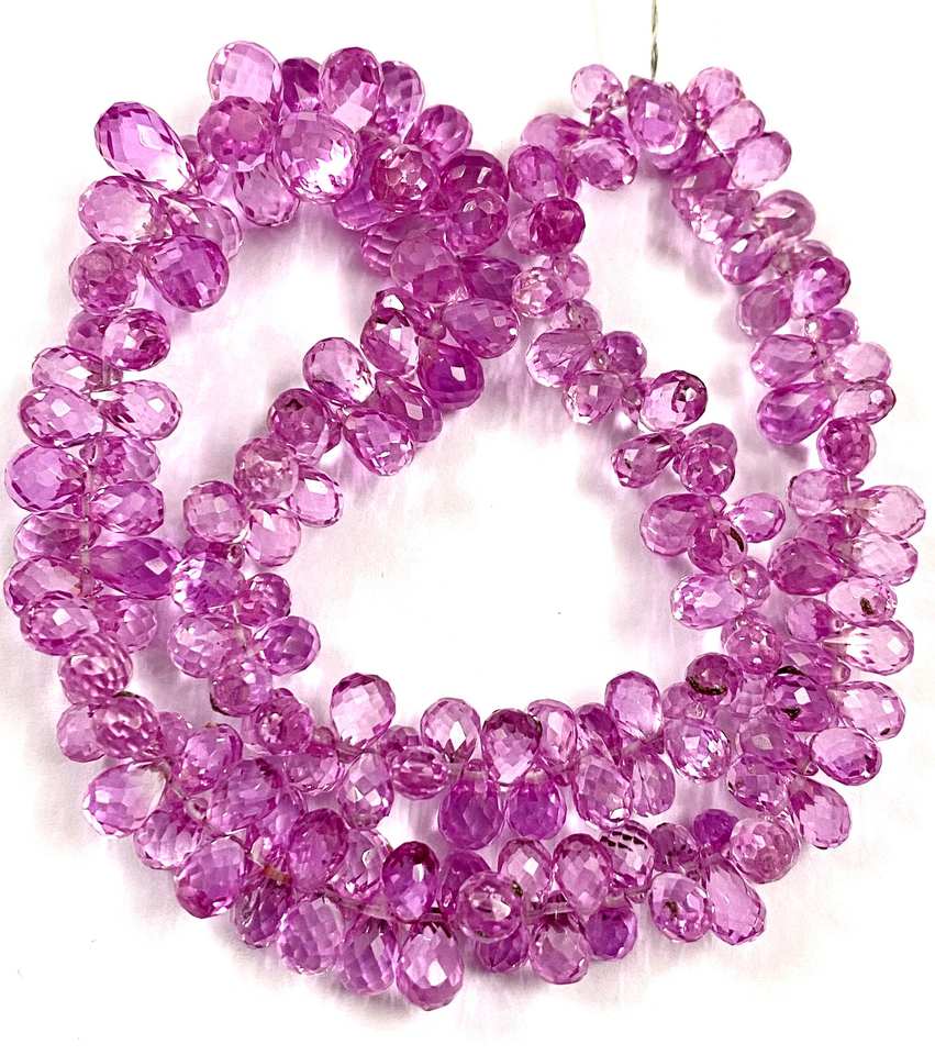 Cuentas Rondelle lisas de zafiro Rosa creadas en laboratorio, cuentas redondas de zafiro rosa de Color súper fino para hacer joyas para mujeres