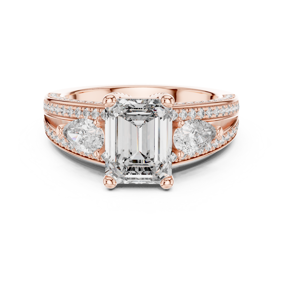 Anillo de compromiso de oro con diamante de laboratorio, banda pavé de doble tallo dividido con halo oculto, elegante anillo de boda de diamantes para mujer