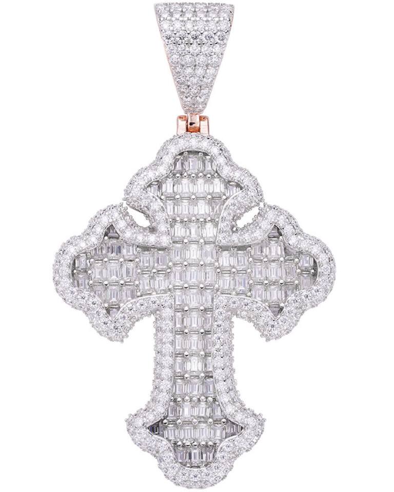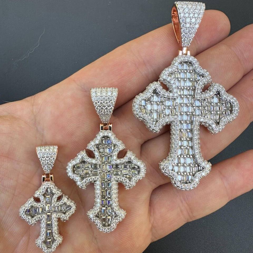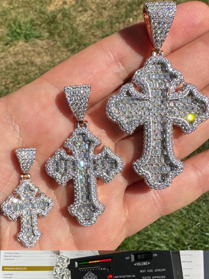 Colgante de Cruz Gótica Tupac con Diamantes de Laboratorio, Corte Brillante Redondo, Chapado en Oro Rosa de 14K, Certificado GIA, Regalo Clásico Unisex