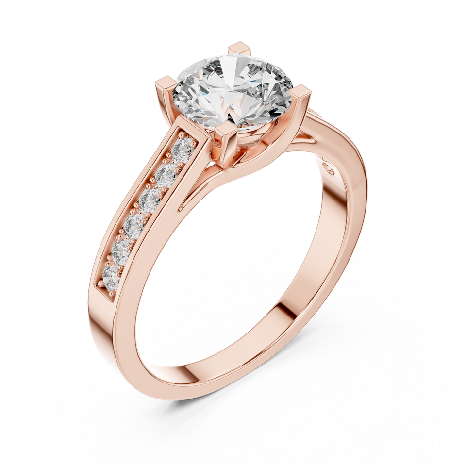 Anillo de Diamante de Laboratorio en Oro Rosa, Anillo de Compromiso con Piedras Laterales Engastadas en Canal, Anillo Nupcial Moderno y Minimalista, Regalo de Aniversario para Ella