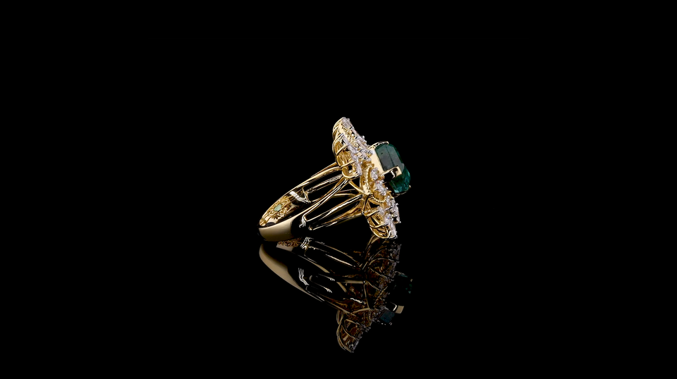 Anillo Clásico de Oro Sólido de 14K/18K con Baño de Rodio, con Diamantes en Corte Pera y Marquesa, Color Verde Laboratorio | Prendas Certificadas por IGI para Fiestas y Bodas