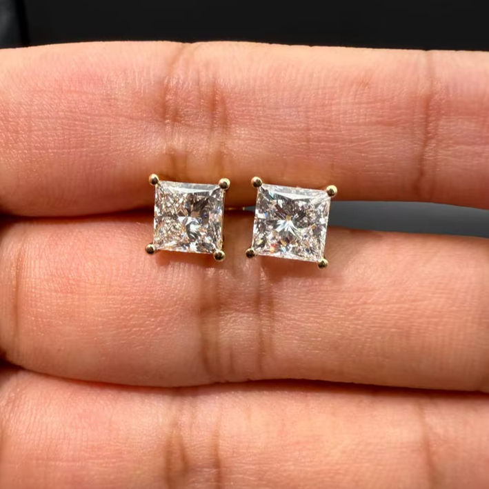 Pendientes de Diamante Cultivado en Laboratorio de 1.01CT, Corte Princesa, Oro Sólido de 18K, Joyería Fina Unisex, Regalo de Promesa para Aniversario, Fiesta