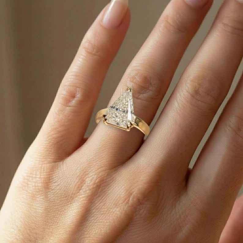 Anillo Solitario de Diamante Cultivado en Laboratorio de 3.02 CT con Corte Triangular para Mujer, Oro Sólido de 14K, Regalo Sorpresa de Boda para Novia