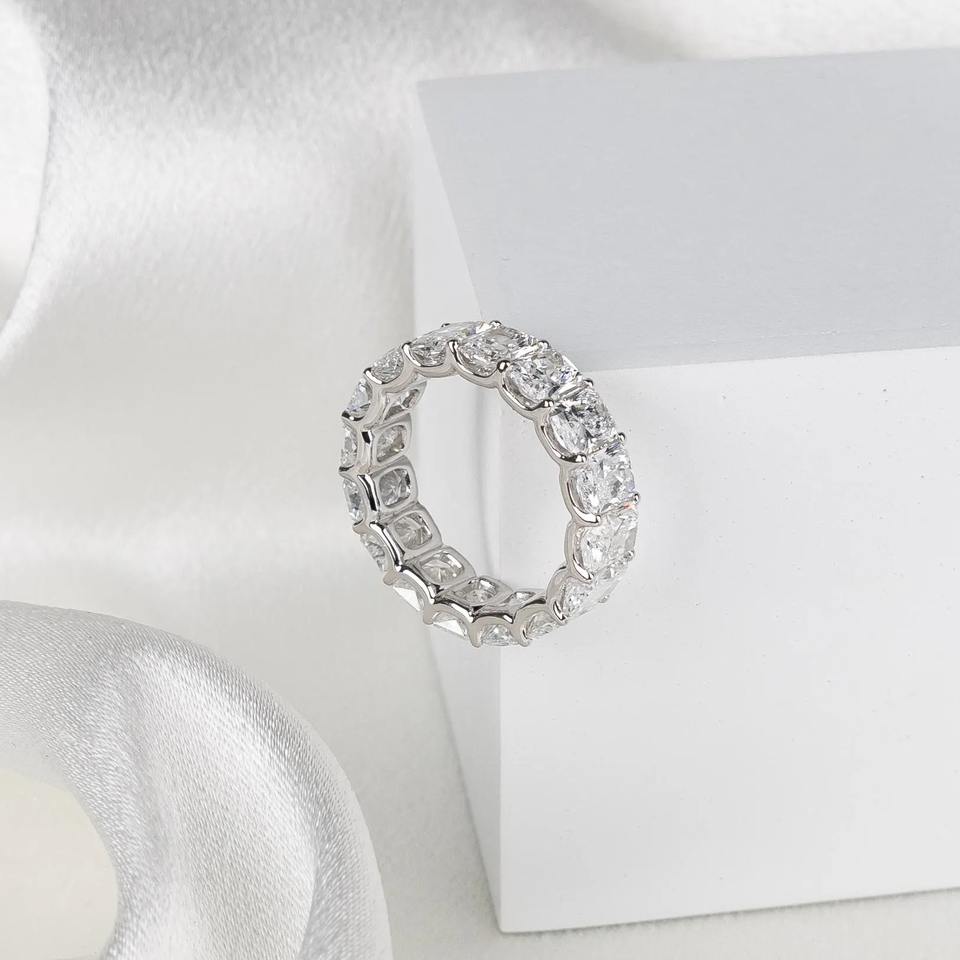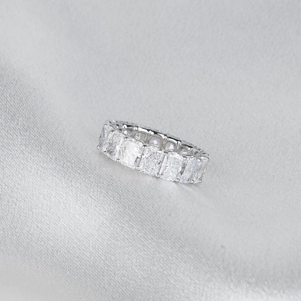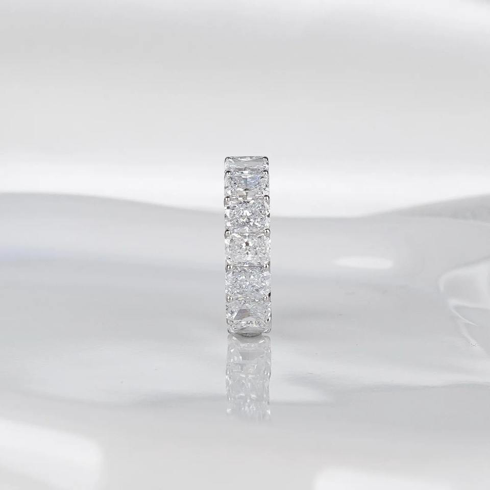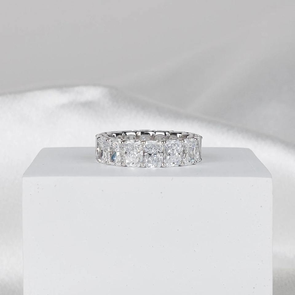 Anillo de compromiso y boda de oro blanco de 14K con banda de eternidad completa de diamantes radiantes cultivados en laboratorio de 8 quilates para mujer, joyería apilable
