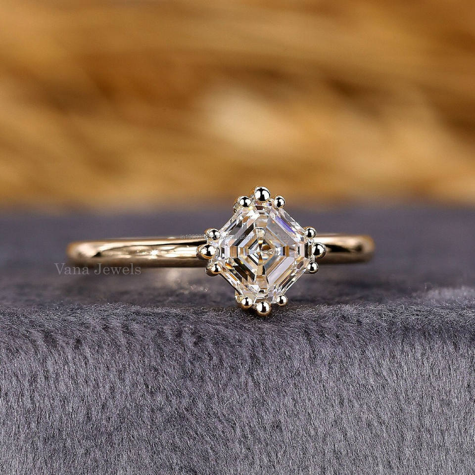 Lab Grown Asscher Cut Solitaire Diamond Anillo de compromiso 10K Oro amarillo sólido Regalo de aniversario de boda simple Certificado IGI