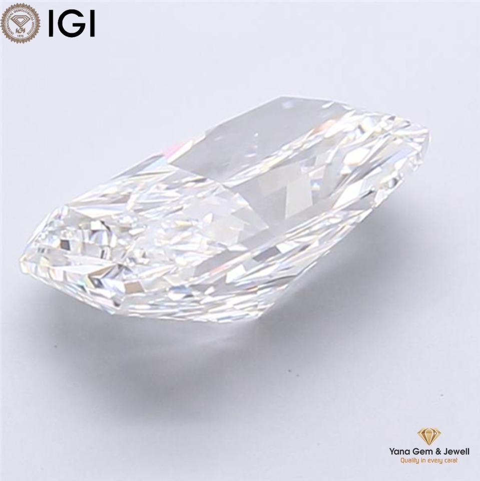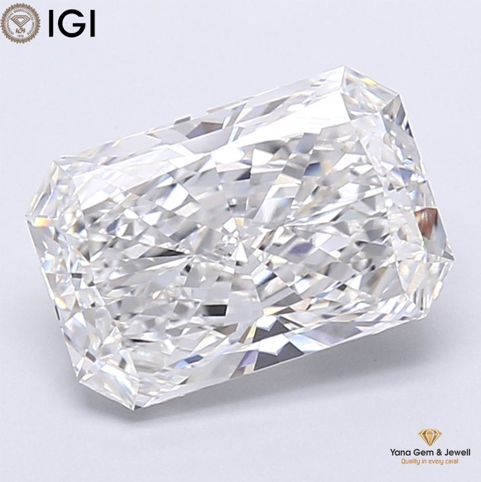 Diamante CVD cultivado en laboratorio, forma radiante, 4.51 quilates, claridad VVS1, color E, certificado IGI, para un impresionante anillo de boda