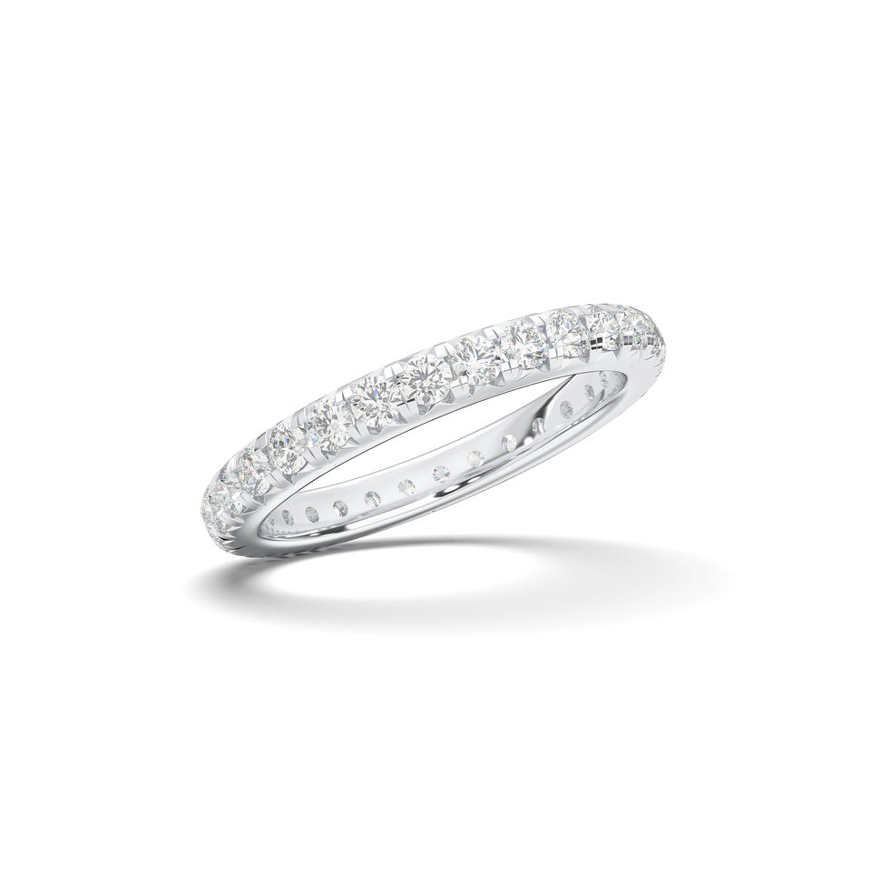 Lab Grown Diamond 1,25 Quilates Forma redonda Full Eternity Pave Set Anillo de bodas en 950 Platinum F-G/VS Anillo de diamantes de calidad para ella