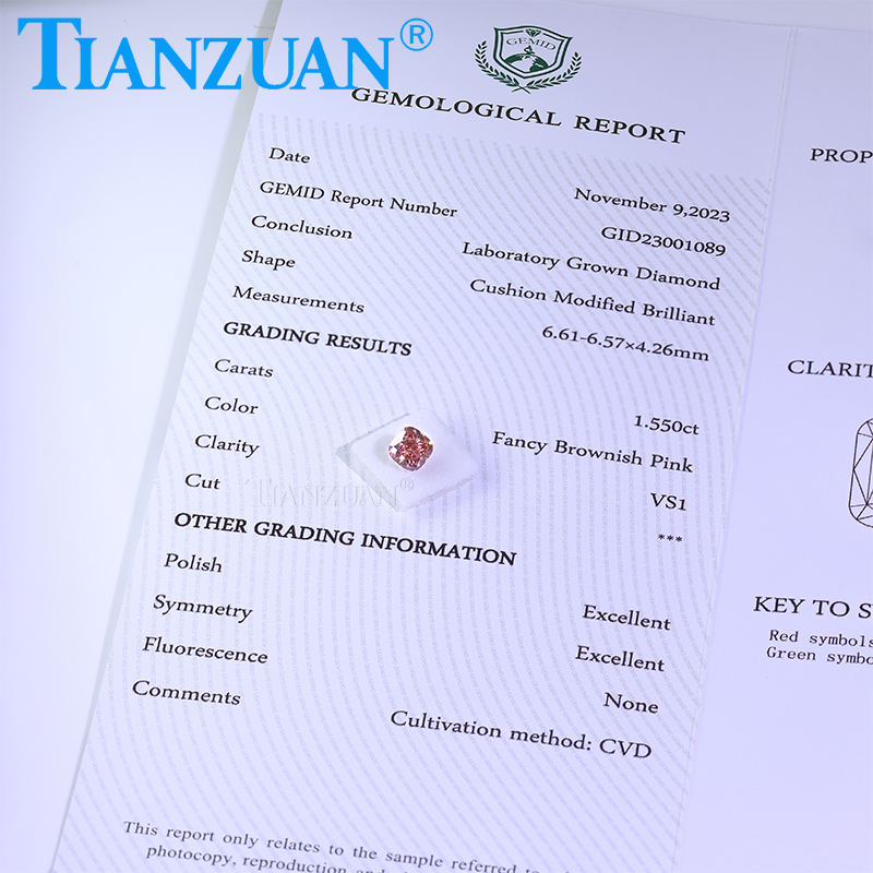 Lab Grown Diamond CVD Cojín Forma Fancy Color Rosa marrón VVS1/VS1 2EX Cuenta de piedras preciosas sueltas con certificado GEMID