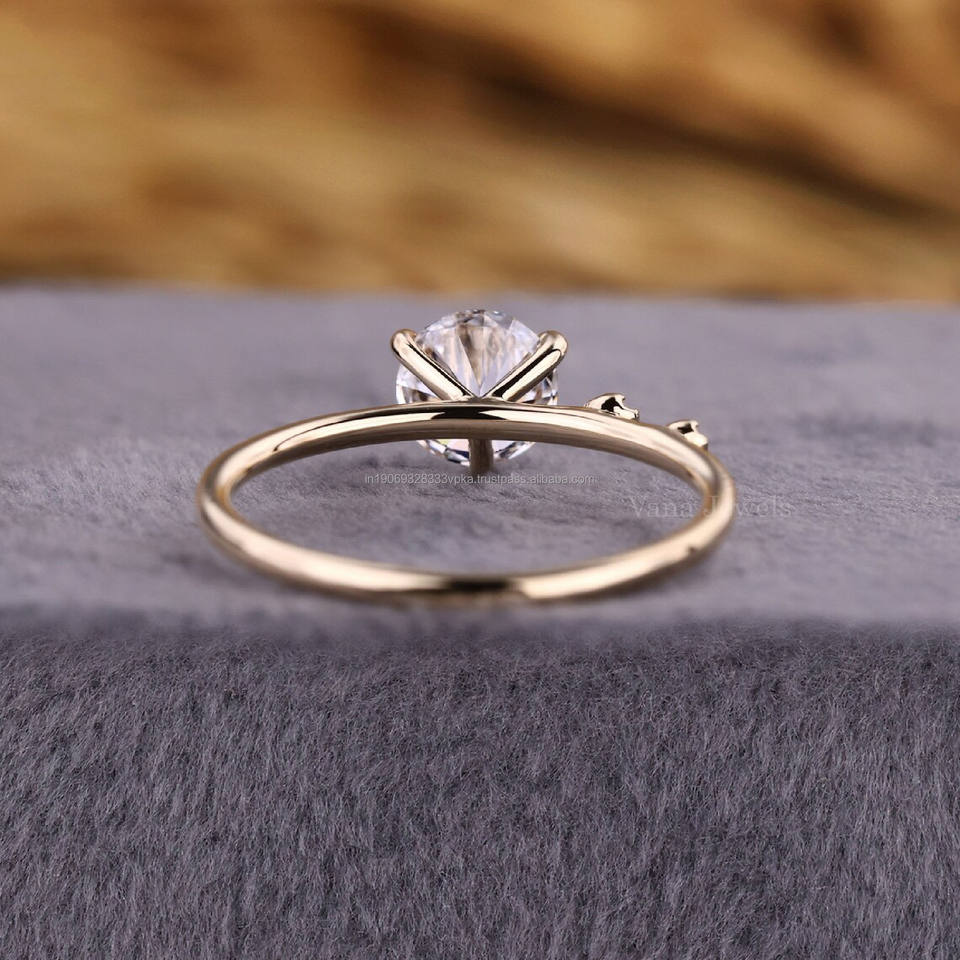 Anillo de compromiso de diamante cultivado en laboratorio, anillo de promesa CVD personalizado de 3 piedras único para mujer, regalo de boda de oro sólido de 14K, certificado IGI