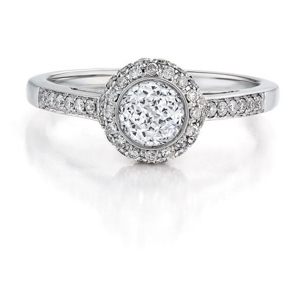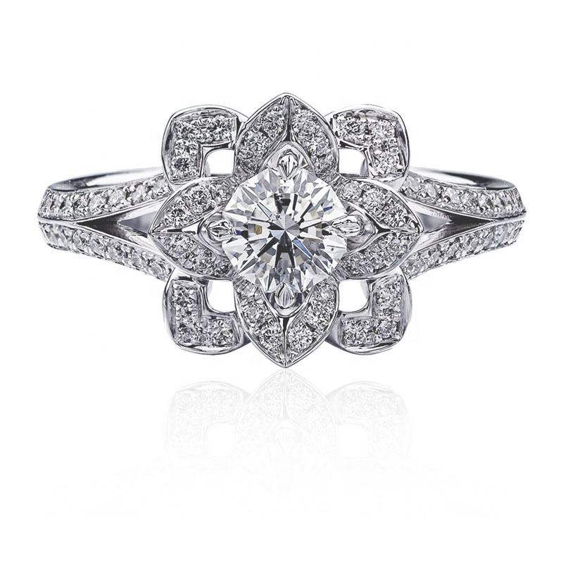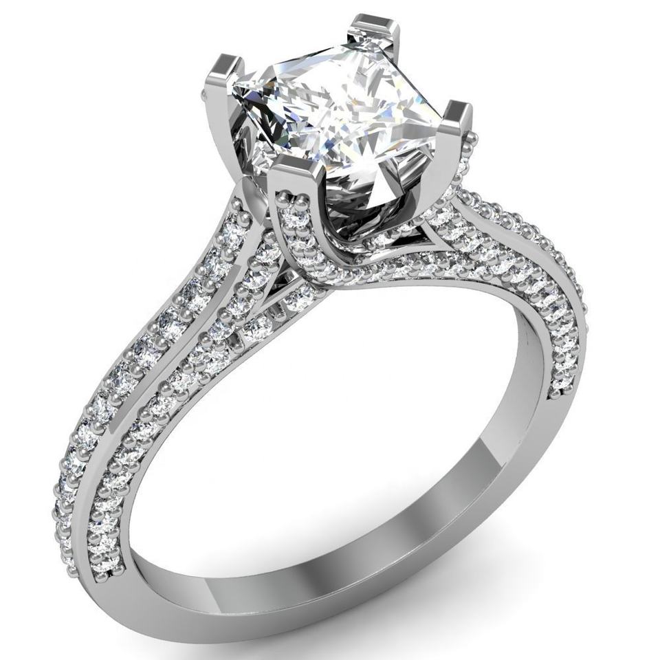 Anillo de compromiso de diamante cultivado en laboratorio con ajuste de pavé y corte brillante redondo en oro blanco para mujer