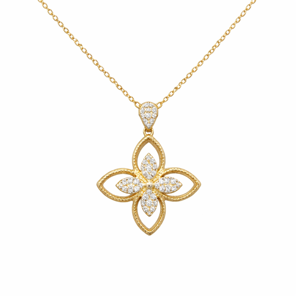 Nombre del producto:Collar con Colgante de Diamantes en Forma Floral de Oro Sólido de 18K