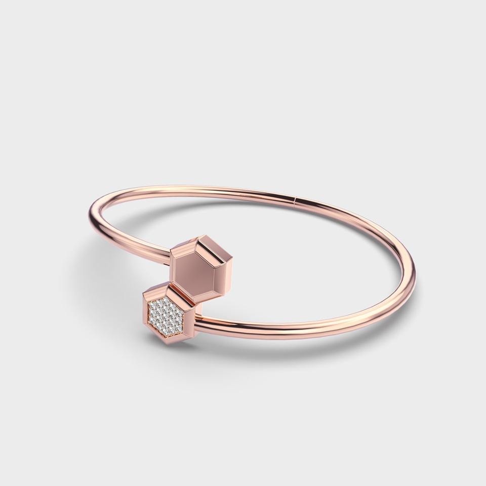 Brazalete Abierto Hexagonal con Diamantes Cultivados en Laboratorio en Oro Amarillo/Blanco/Rosa de 9 Quilates