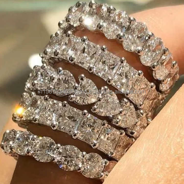 Anillo de Eternidad Multibanda con Diamantes Cultivados en Laboratorio, Oro Sólido de 10K, 14K, 18K, Anillo Apilable para Compromiso, Boda, para Mujer