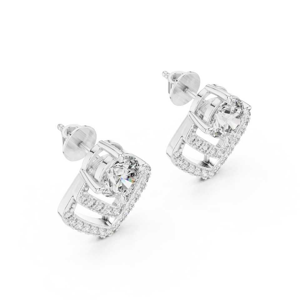 Pendientes de Oro de 18K con Diamantes Cultivados en Laboratorio, Forma Redonda, Estilo Vintage, Joyería Fina para Mujer, para Bodas y Fiestas