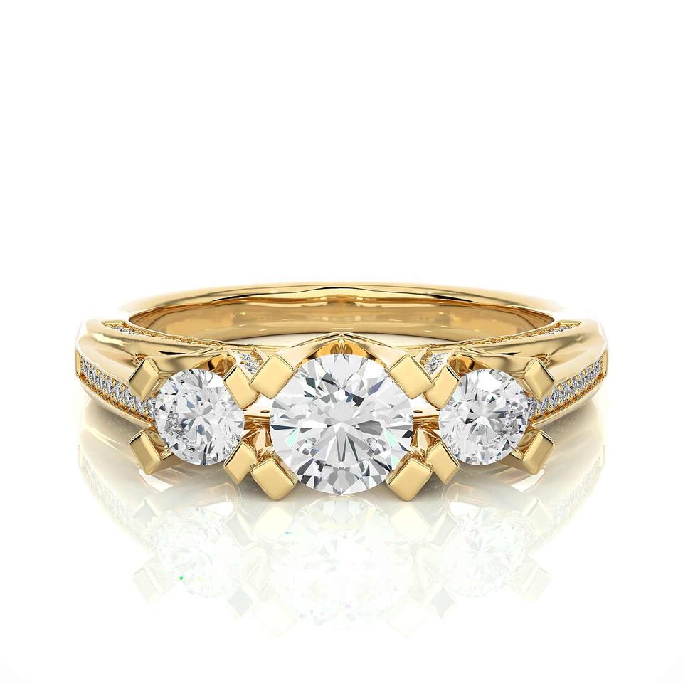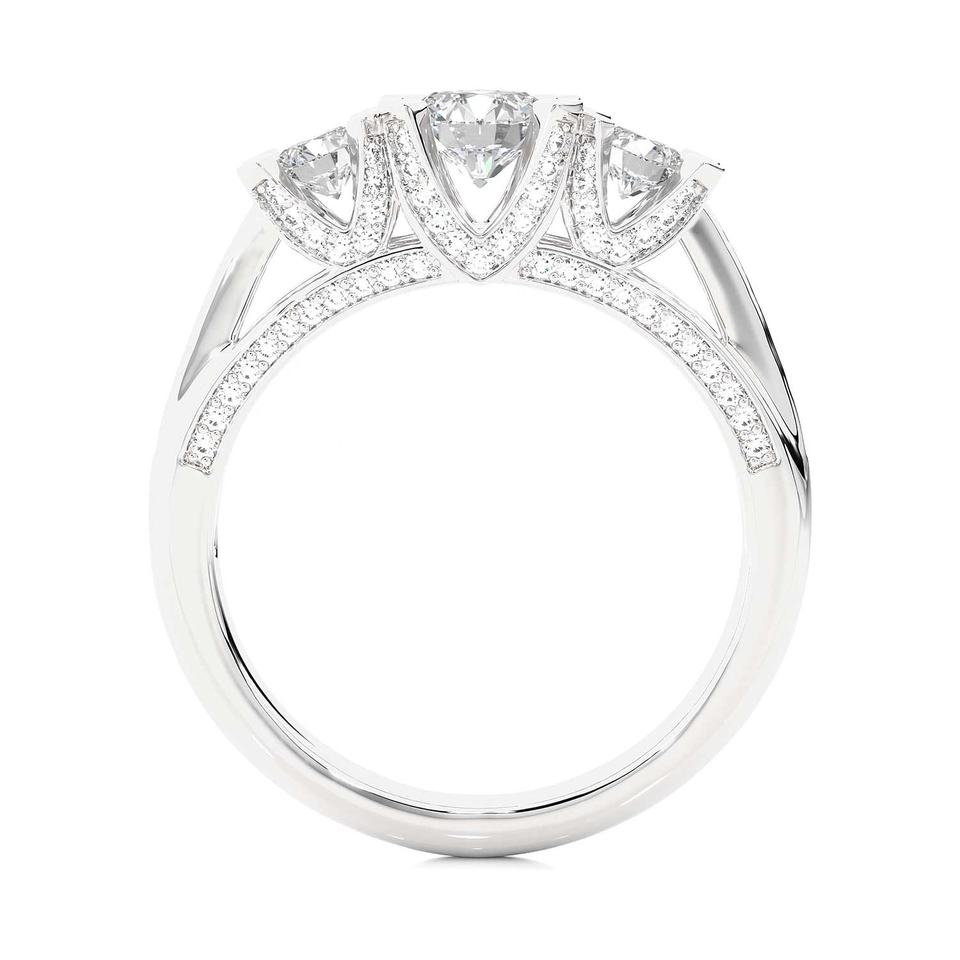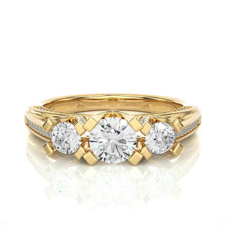 Anillo de Oro Sólido de 9k, 10k, 14k, 18k con Tres Diamantes Creados en Laboratorio, Engaste Micro Pavé, Corte Brillante Redondo, Anillos de Boda de Oro con Diamantes