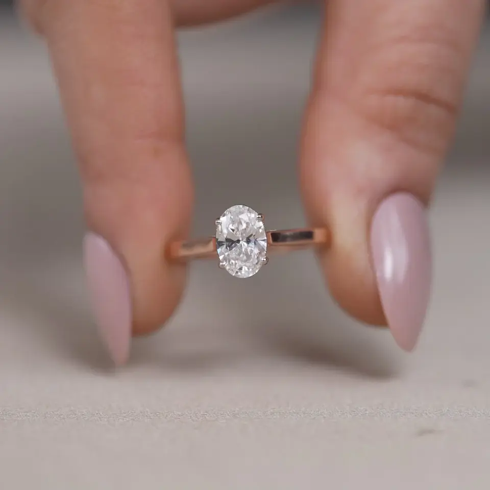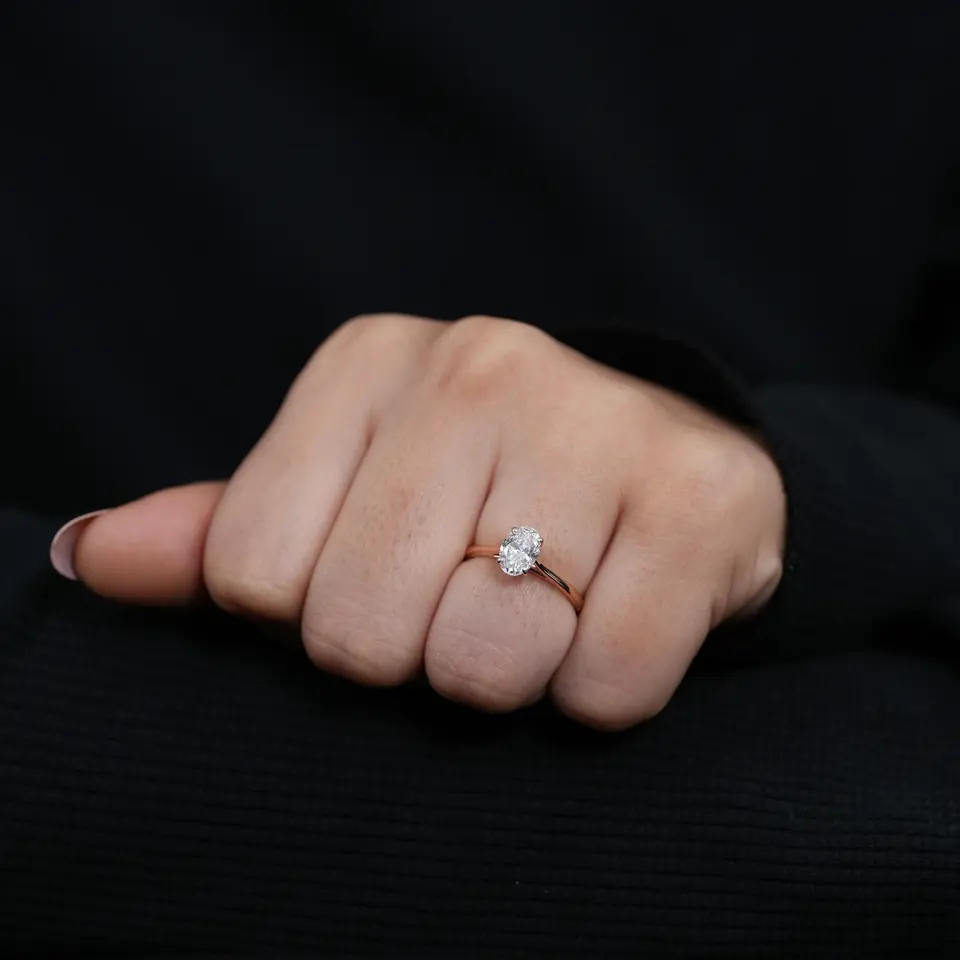Anillo Solitario con Diamante Cultivado en Laboratorio, Corte Ovalado, Plata de Ley/Oro/Platino, Claridad VS1, Elegante y con Estilo