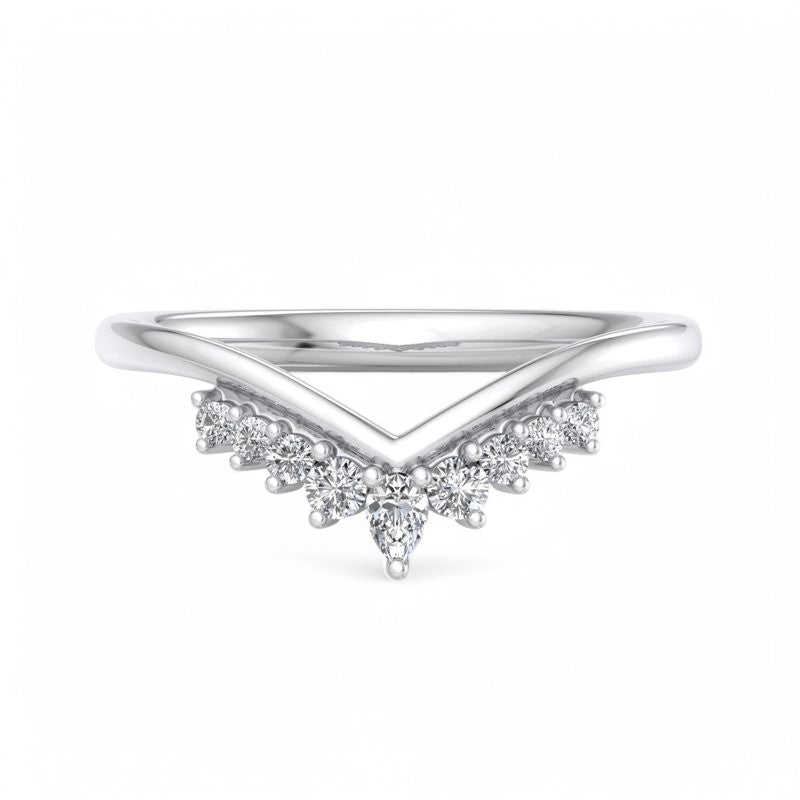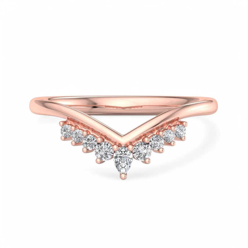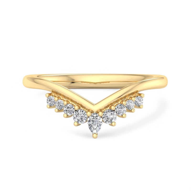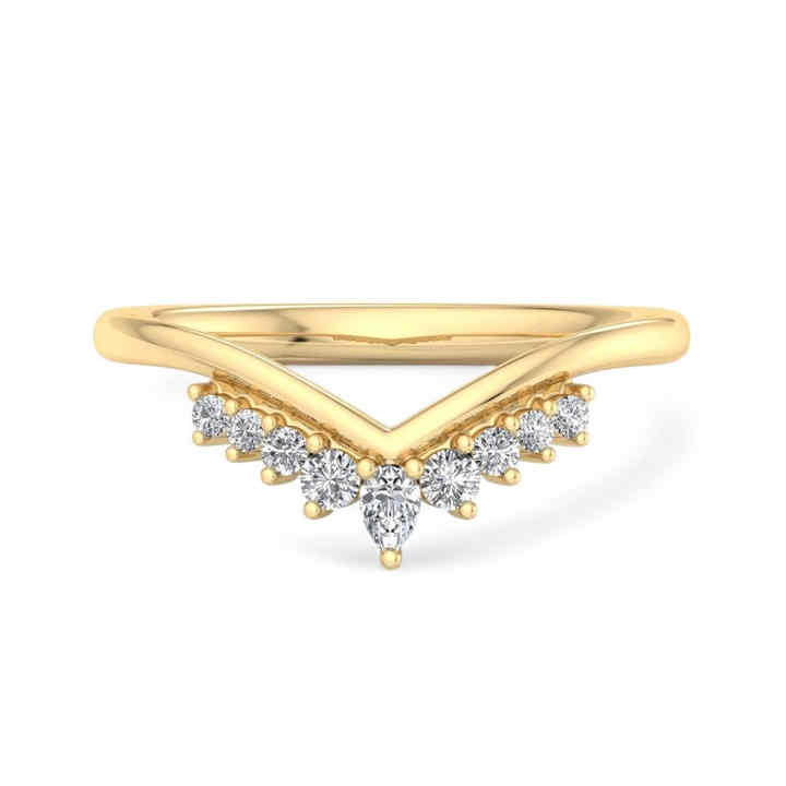 Anillo de Diamantes Cultivados en Laboratorio con Forma de V, Anillo de Boda Apilable de Oro de 14K y 18K con Racimo de Diamantes Redondos en Forma de Pera para Mujer