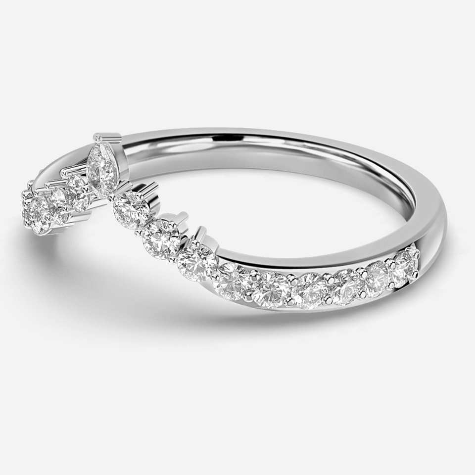 Alianza de boda de diamante cultivado en laboratorio con diseño curvo de corte de pera