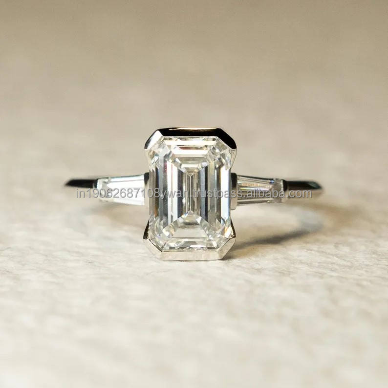 Anillo de compromiso de tres piedras con corte de Esmeralda cultivado en laboratorio, anillo de bodas de plata de ley IGI para mujer, regalo de fiesta de aniversario