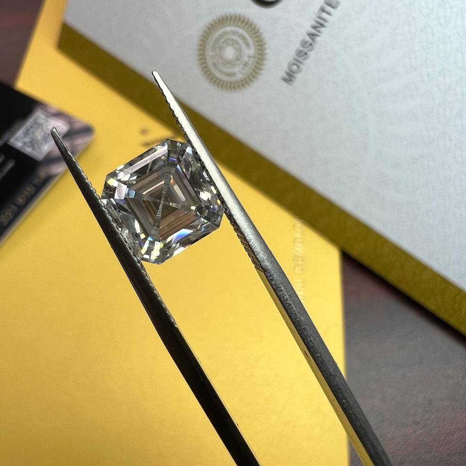 Cuarzo Gris Cultivado en Laboratorio, Corte Asscher, Certificado IGI, 5-10g, Marca Munjani, para la Fabricación de Joyas, en Venta