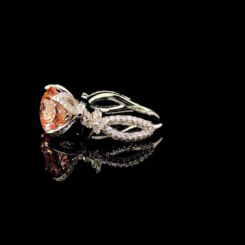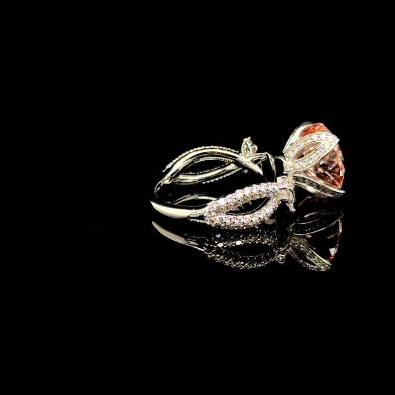 Anillo de Diamantes Cultivados en Laboratorio, Color Rosa, Corte Redondo de 2.01CT, con Halo de Flores, para Mujer, Oro Sólido de 14K, Regalo Sorpresa de Boda para Novia