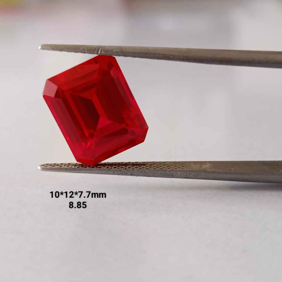 Piedra Preciosa Cultivada en Laboratorio, Rubí Corte Esmeralda, Gema Suelta Rojo Intenso, Calidad Premium, Piedra Sintética para Joyería Hecha a Mano