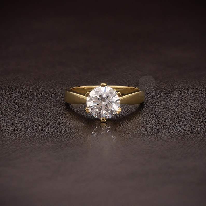 Anillo solitario de diamante redondo cultivado en laboratorio para unisex, oro macizo de 14K, joyería para propuesta de matrimonio para novias, anillos al por mayor.