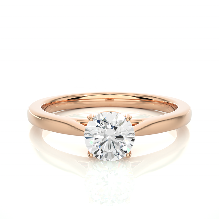 Anillo Solitario de Diamante Redondo Cultivado en Laboratorio, Certificado IGI, Oro Amarillo de 10K/14K, Anillo de Compromiso Solitario de Cuatro Puntas, Joyería Minimalista