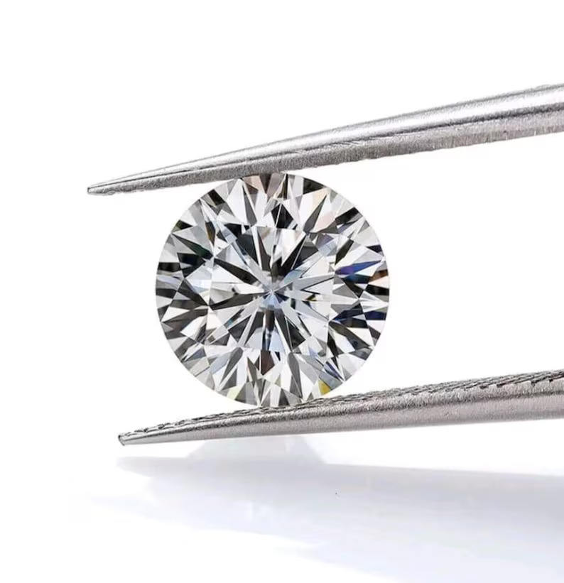 Diamante Sintético Redondo Cultivado en Laboratorio, Color D-F Incoloro, Claridad VS1, Talla +0 a -1, Corte Muy Bueno, Gema Blanca Brillante