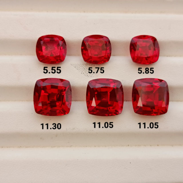 Rubí cultivado en laboratorio, corte cojín, piedra suelta, rojo premium, para la fabricación de joyas, uso en la elaboración de joyas artesanales de lujo.