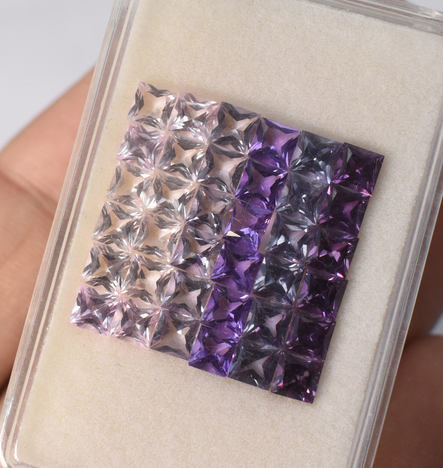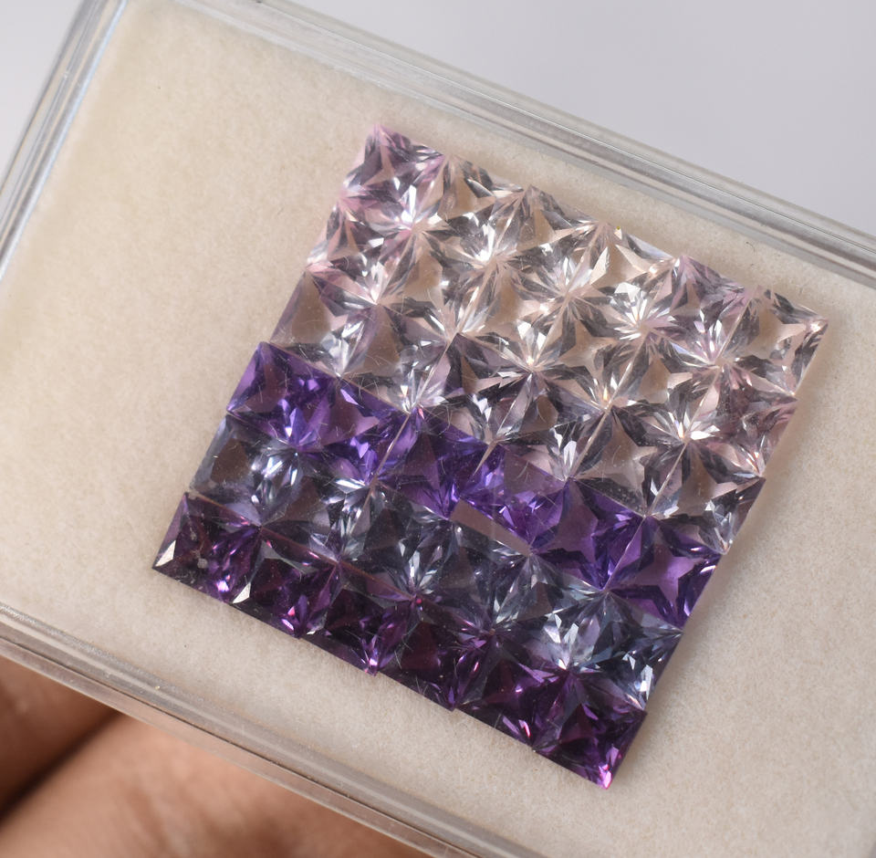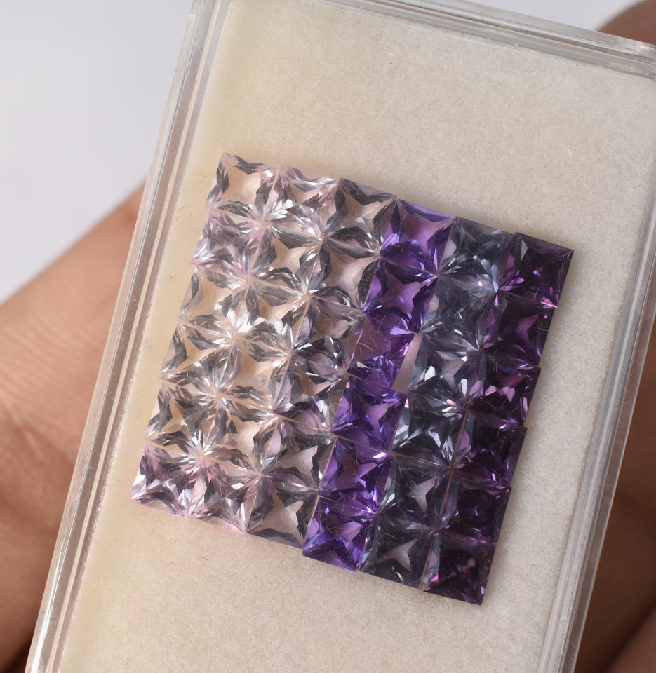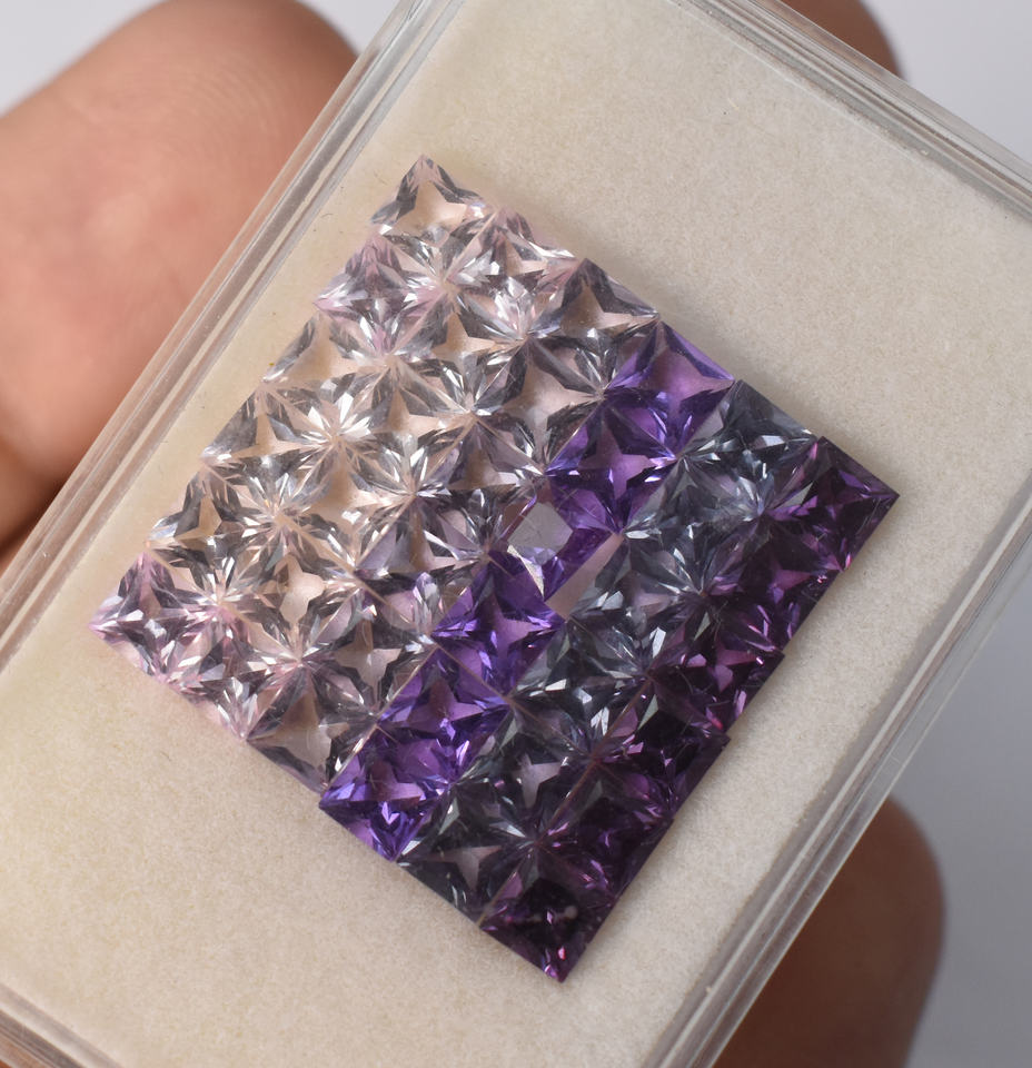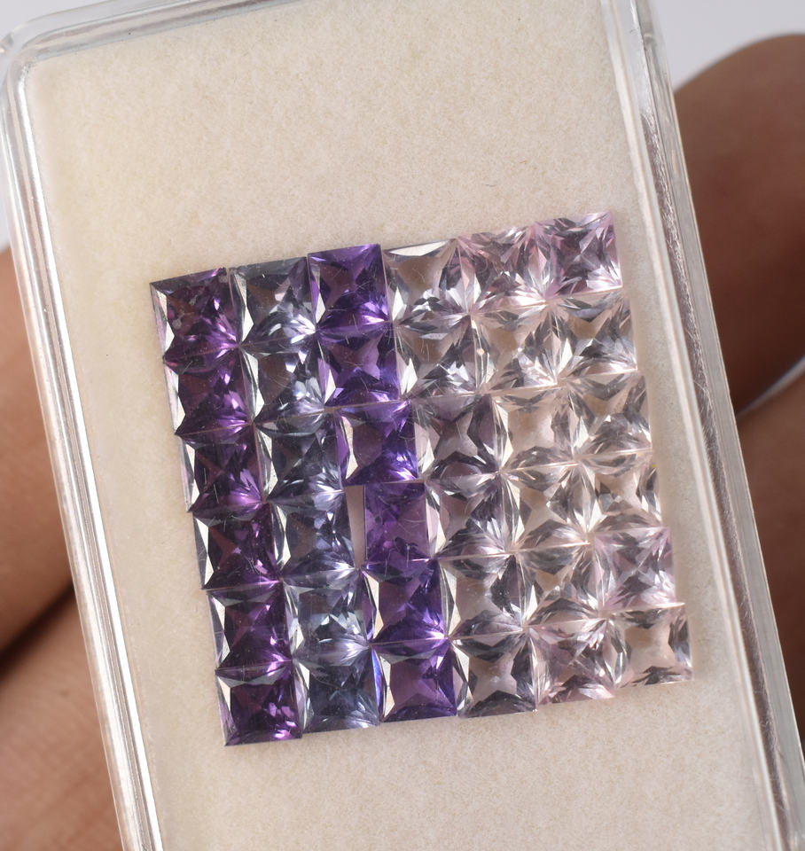 Safires multicolor de laboratorio, Alexandrita, Amatista, Kunzita en cuadrados, corte princesa de 4 mm, mezcla de tonos, corindón de laboratorio para joyería.