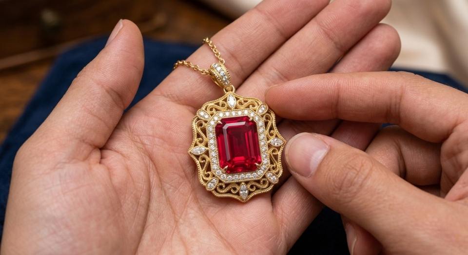 Colgante de alas cristianas en rubí rojo de laboratorio, delicado, nupcial, chapado en oro de 18k, plata de ley 925, estilo europeo