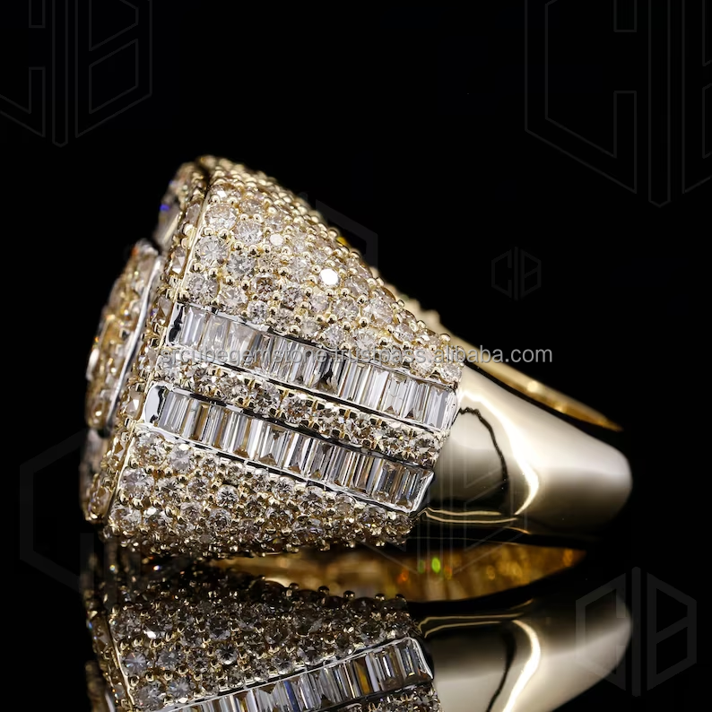 Anillo de Diamantes Simulados de Laboratorio, Anillo Hip Hop con Incrustaciones, Anillo Ancho para Raperos, para Hombre