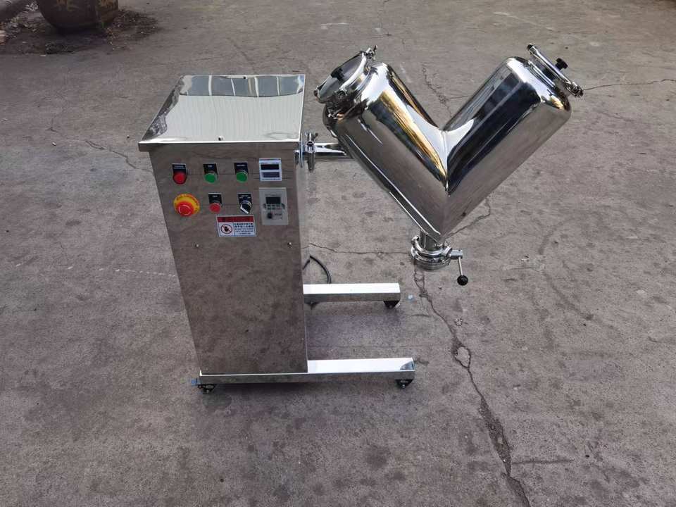 Mezclador de polvo de gránulos en forma de V pequeño y eficiente de laboratorio, máquina mezcladora tipo V, bomba de Motor, caja de cambios de cojinete de engranajes para revestimiento químico