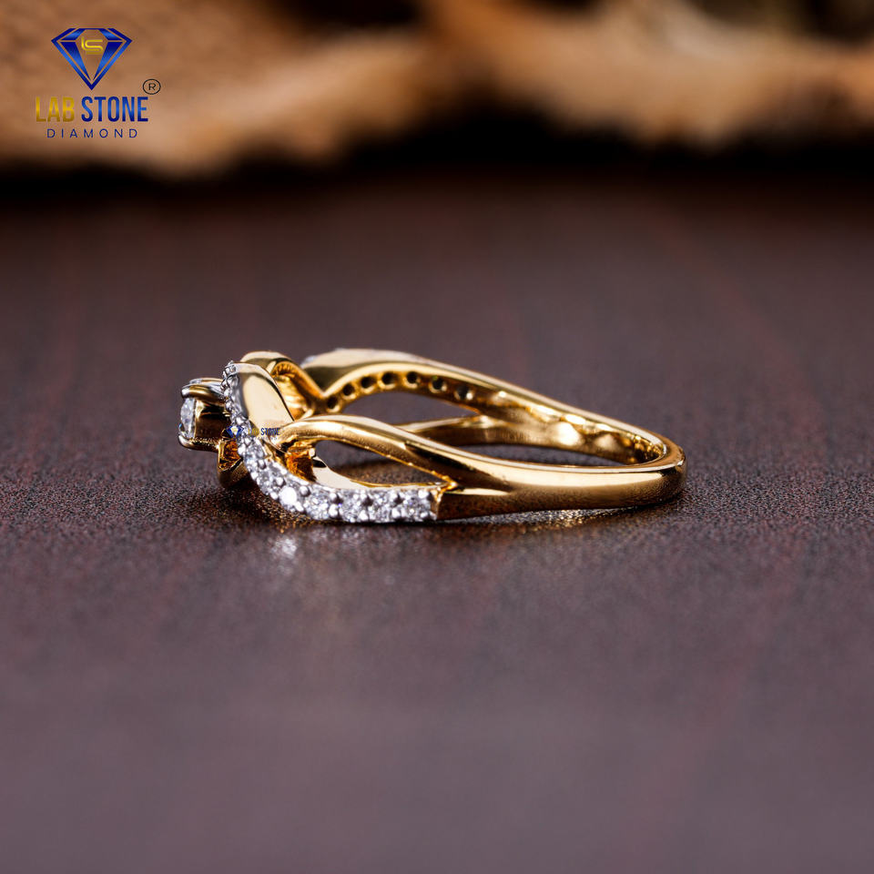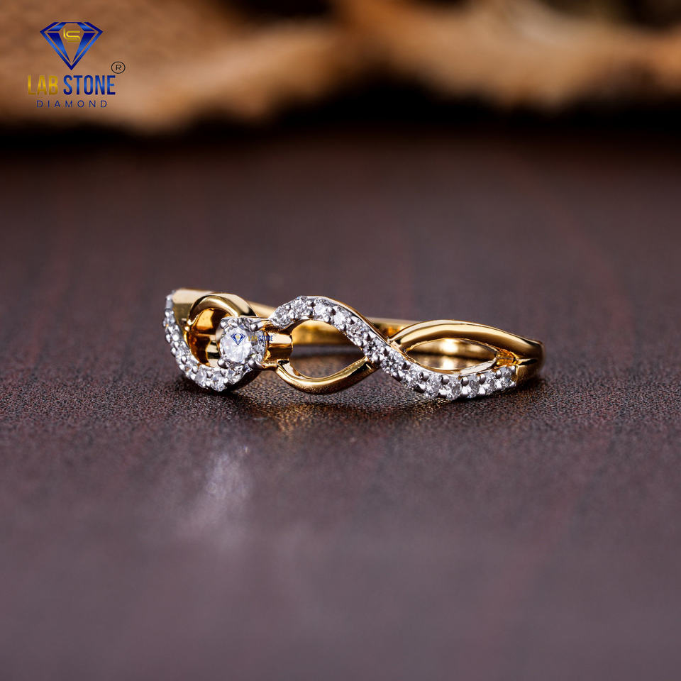 Lab-Stone Party Wear Anillo de diamantes 0.239 TDW Diamante de corte redondo Oro amarillo Color DE LA EF-VS