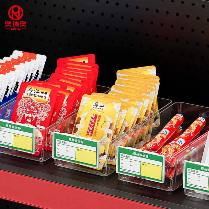 Organizador de Plástico para Etiquetas, Exhibidor de Plástico para Snacks en Tiendas y Supermercados con Ranura Frontal para Etiqueta de Precio
