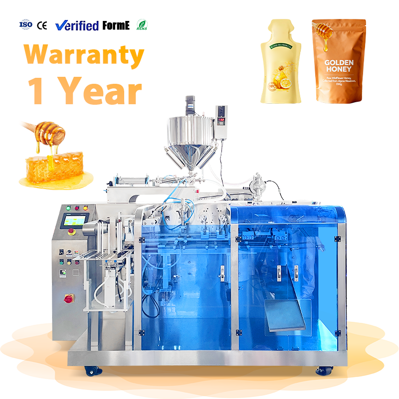 Máquina de llenado y sellado automático de bolsas irregulares Doypack para miel, salsa de tomate y mantequilla de cacahuete, que ahorra trabajo.