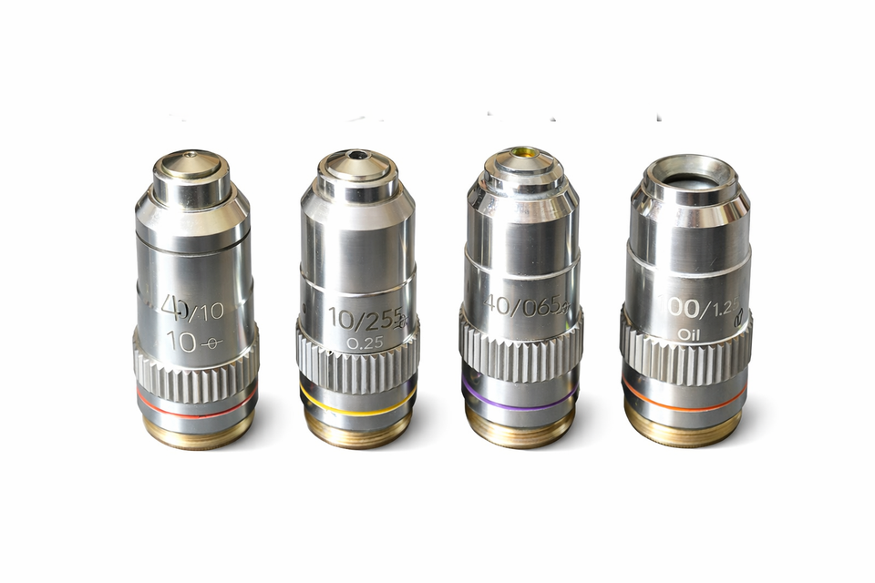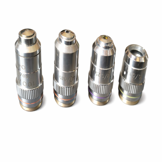 Kit de Lentes Objetivas para Microscopio de Laboratorio 4X 10X 40X 100X, de Latón, Campo Plano, Infinito, Acromáticas, Óptica de Alta Resolución