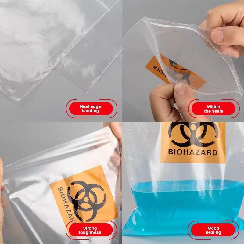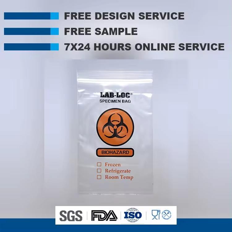 Bolsa con cremallera LDPE de grado hospitalario, muestra de laboratorio, riesgo biológico, impresión personalizada, sello de muestra estéril, impresión personalizada para riesgo biológico
