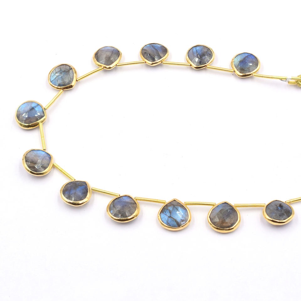 Product Name:Labradorite Silver Bezel Gold Plated Top Side Drilled 12 Beads Strand