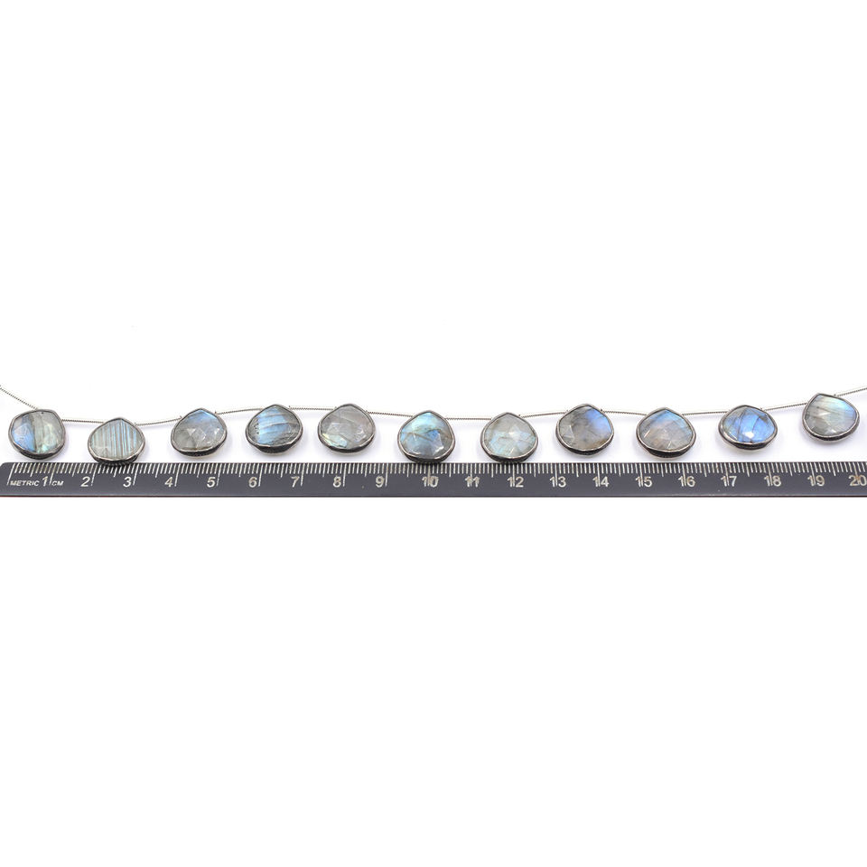 Labradorita 13 a 15 MM forma de corazón bisel plateado negro oxidado plateado lado superior perforado 11 cuentas hebra