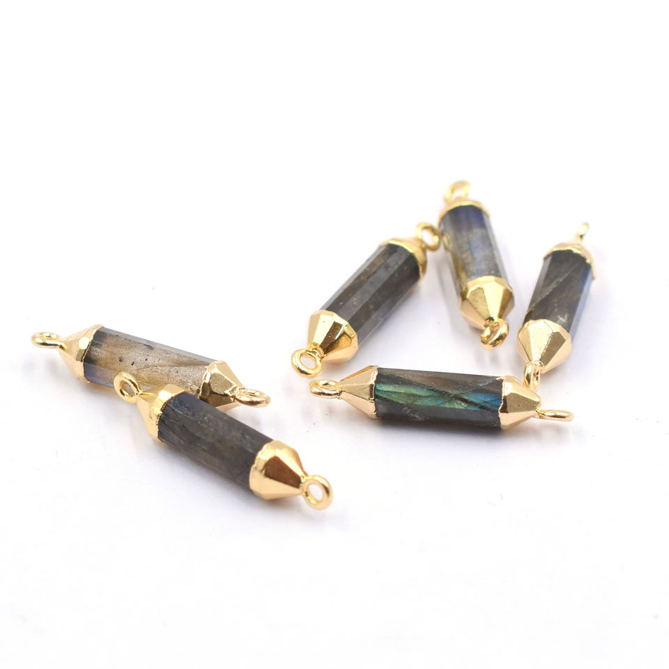 Nombre del Producto:Labradorita de 22 a 24 mm con forma de tubo y engaste, conector chapado en oro.