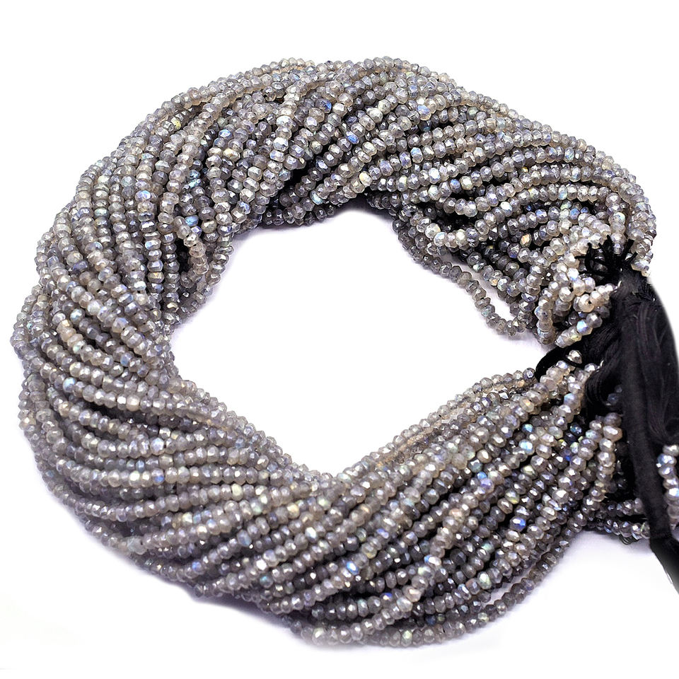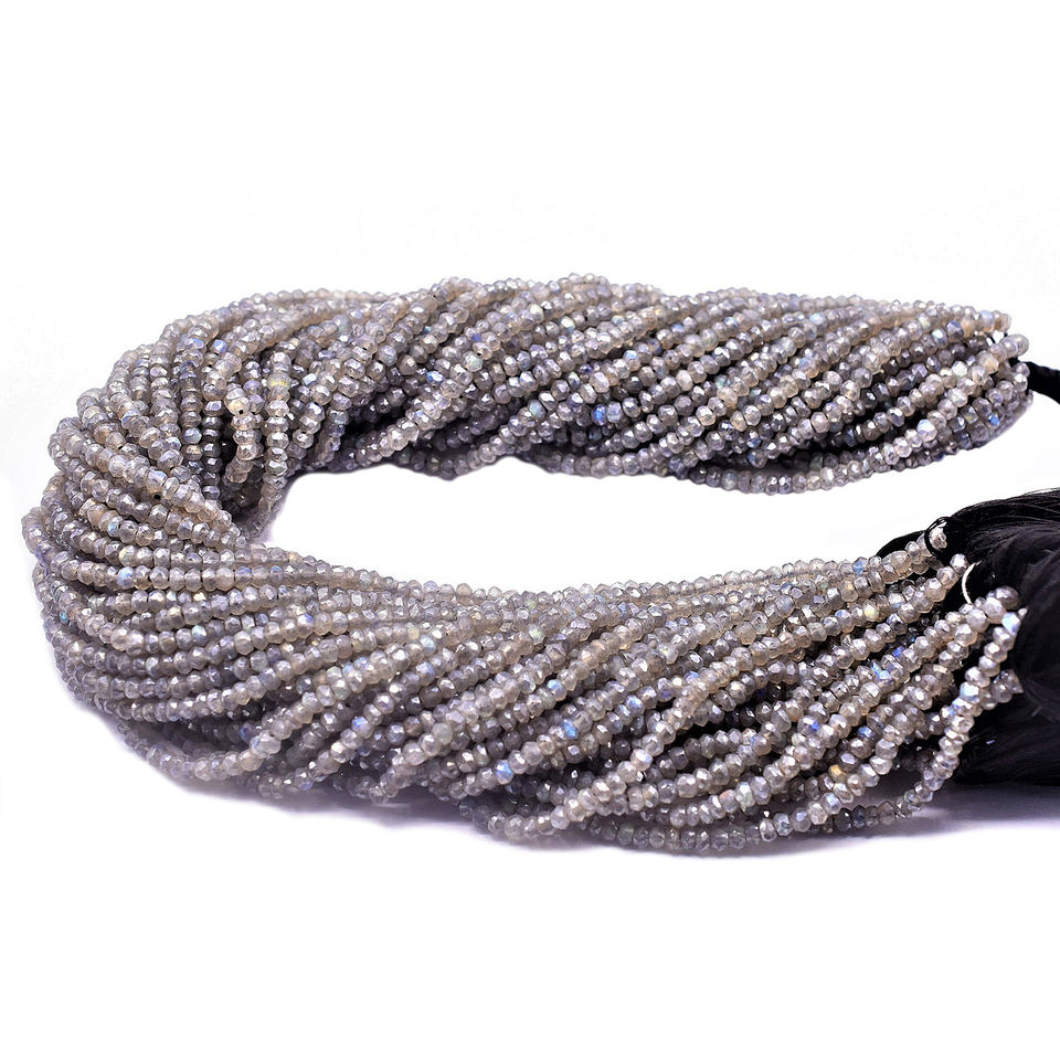 Nombre del Producto:Labradorita de 3 a 4 mm, forma Rondelle, hebra de cuentas facetadas