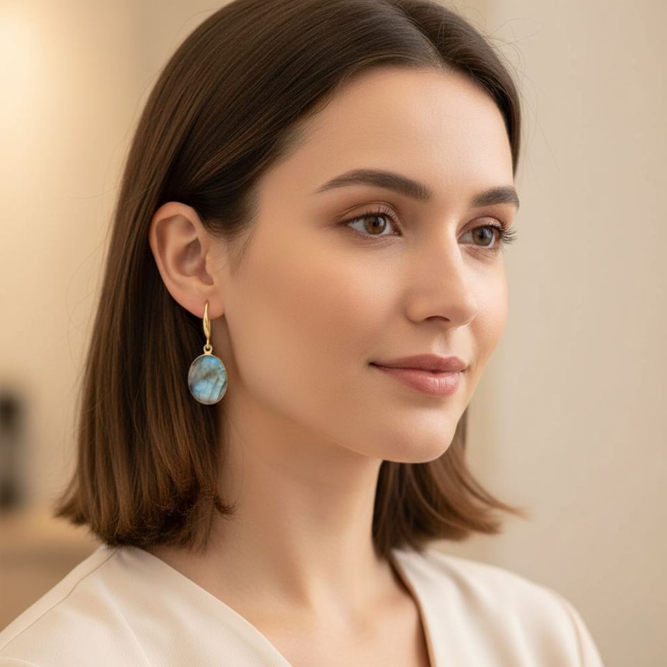Labradorite Oval Shape Silver Bezel Gold Plated Earring