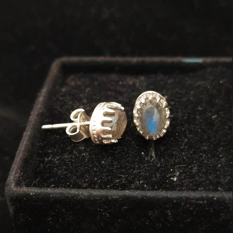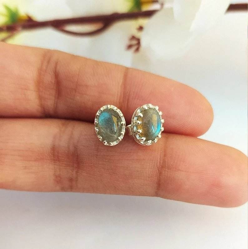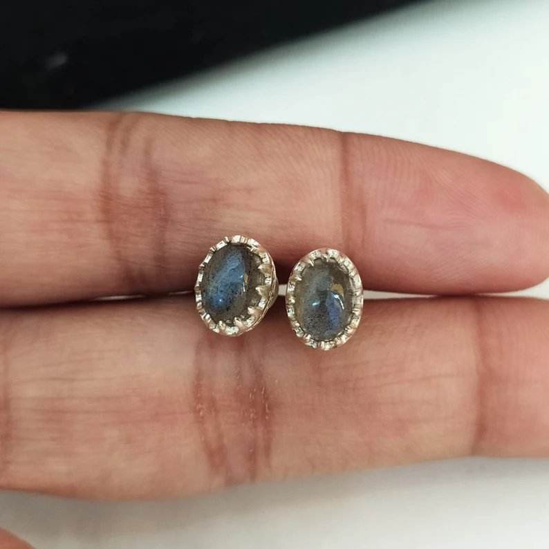 Labradorita azul fuego Stud 925 plata esterlina diseño único Push Back Stud mujeres aniversario regalo de cumpleaños al por mayor a granel