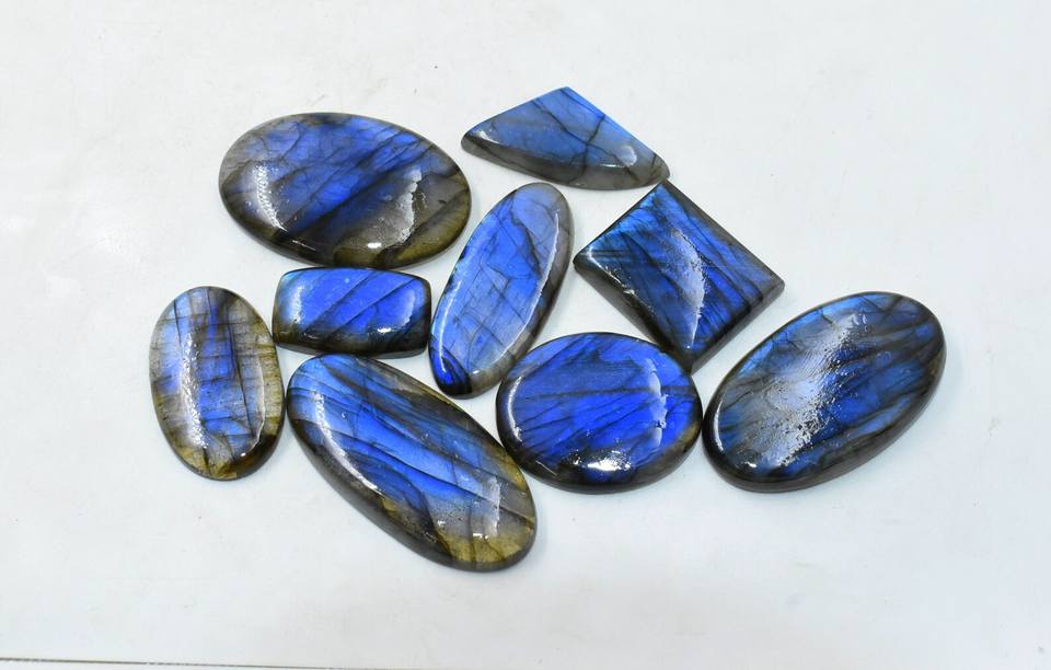 Labradorita azul llamativo cabujón ambos lados pulido mezcla forma 9 Uds lote hecho a mano piedras preciosas sueltas para hacer todas las joyas