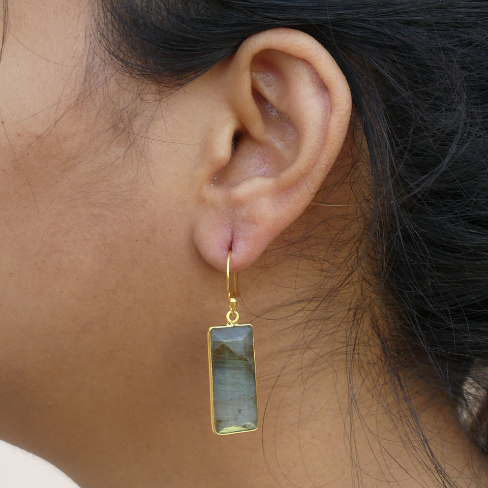 Pendiente de labradorita Desgaste de la boda Plata de Ley 925 Joyería chapada en oro Pendiente colgante de piedras preciosas