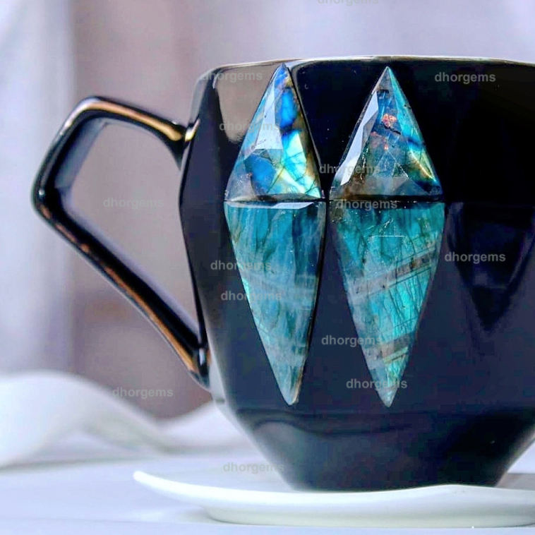 Taza de Café con Piedra Preciosa de Labradorita | Taza de Té de Cerámica con Diseño de Cristal de Cuarzo para Sanación, Meditación, Energía, Decoración Espiritual, Regalo