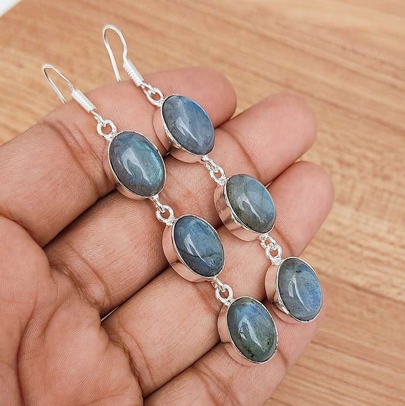Pendientes Colgantes de Labradorita Multicolor con Alambre de Plata 925, Pendientes de Cristal, Joyería Boho Hecha a Mano, Regalo para Ella